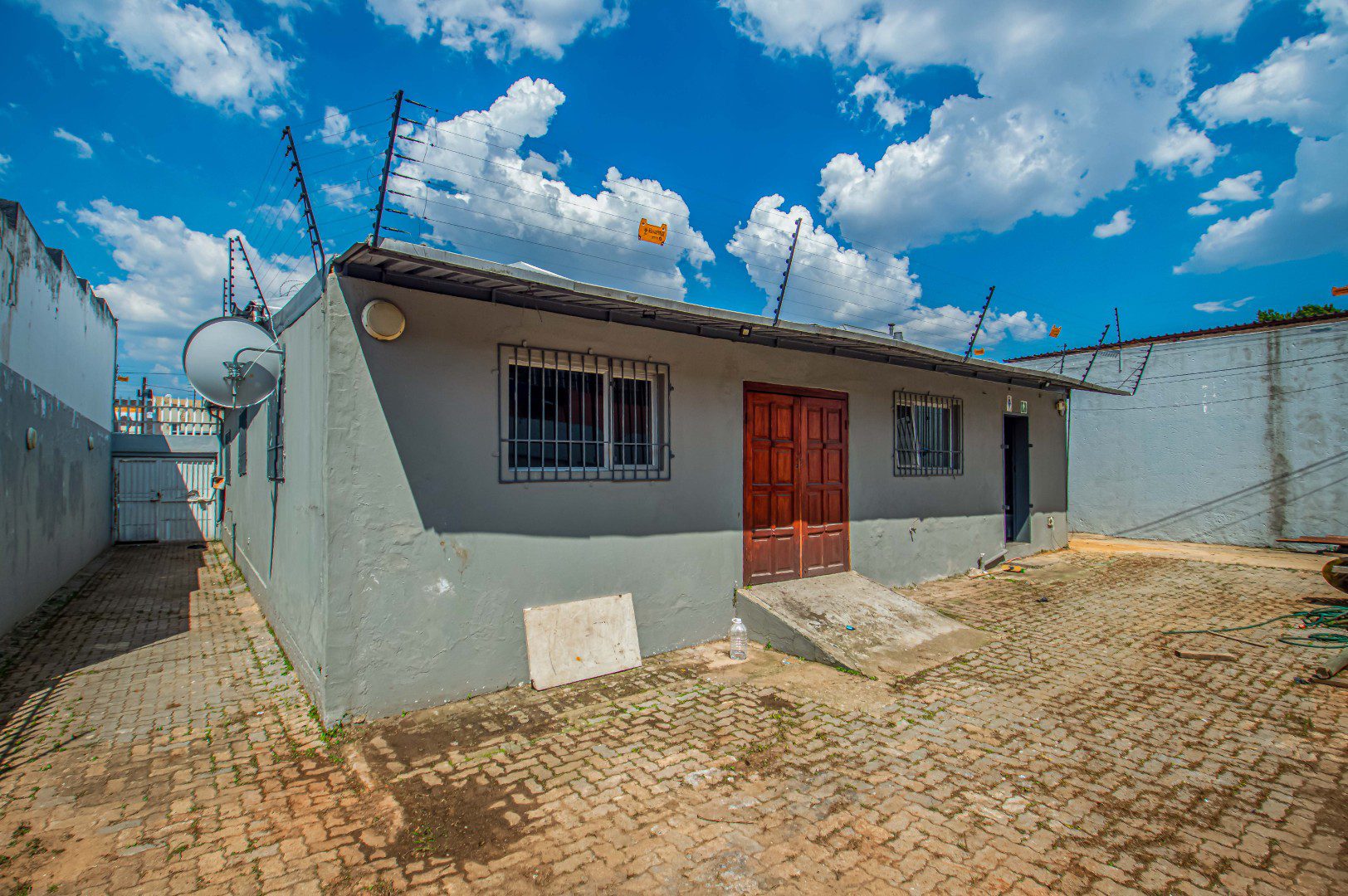 Internally, the property offers two offices with a reception area, as well as a dedicated restaurant or food outlet space complete with a kitchen and separate ablution facilities. The layout is practical and adaptable, catering to a variety of commercial uses. An outside area further enhances functionality, suitable for seating, storage, or operational use.