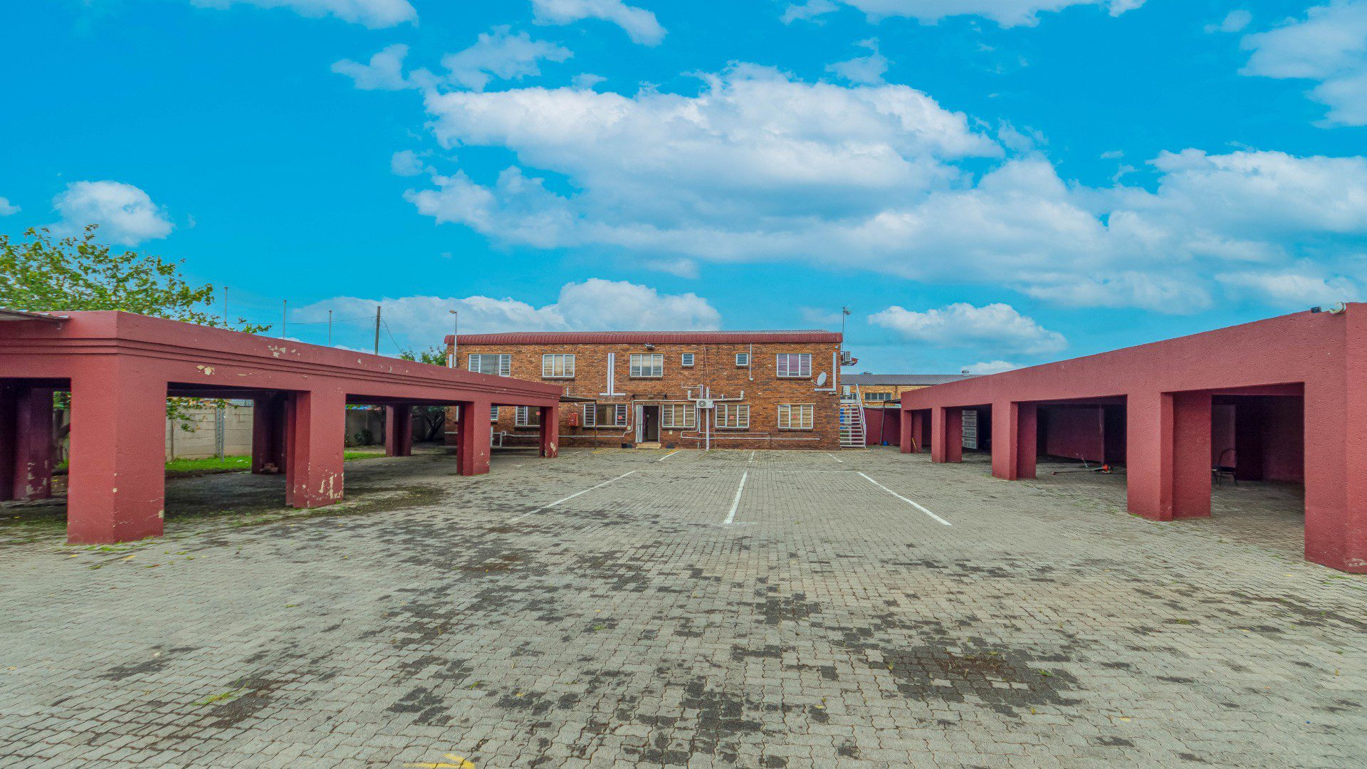 Paved carports for vehicle protection.