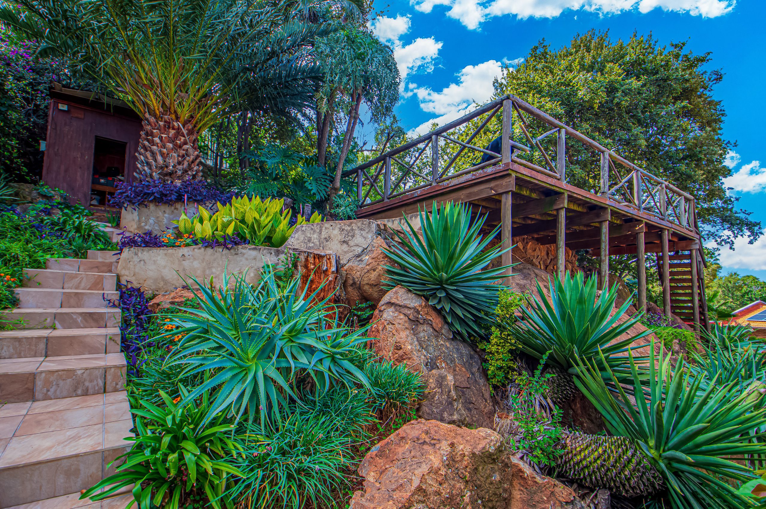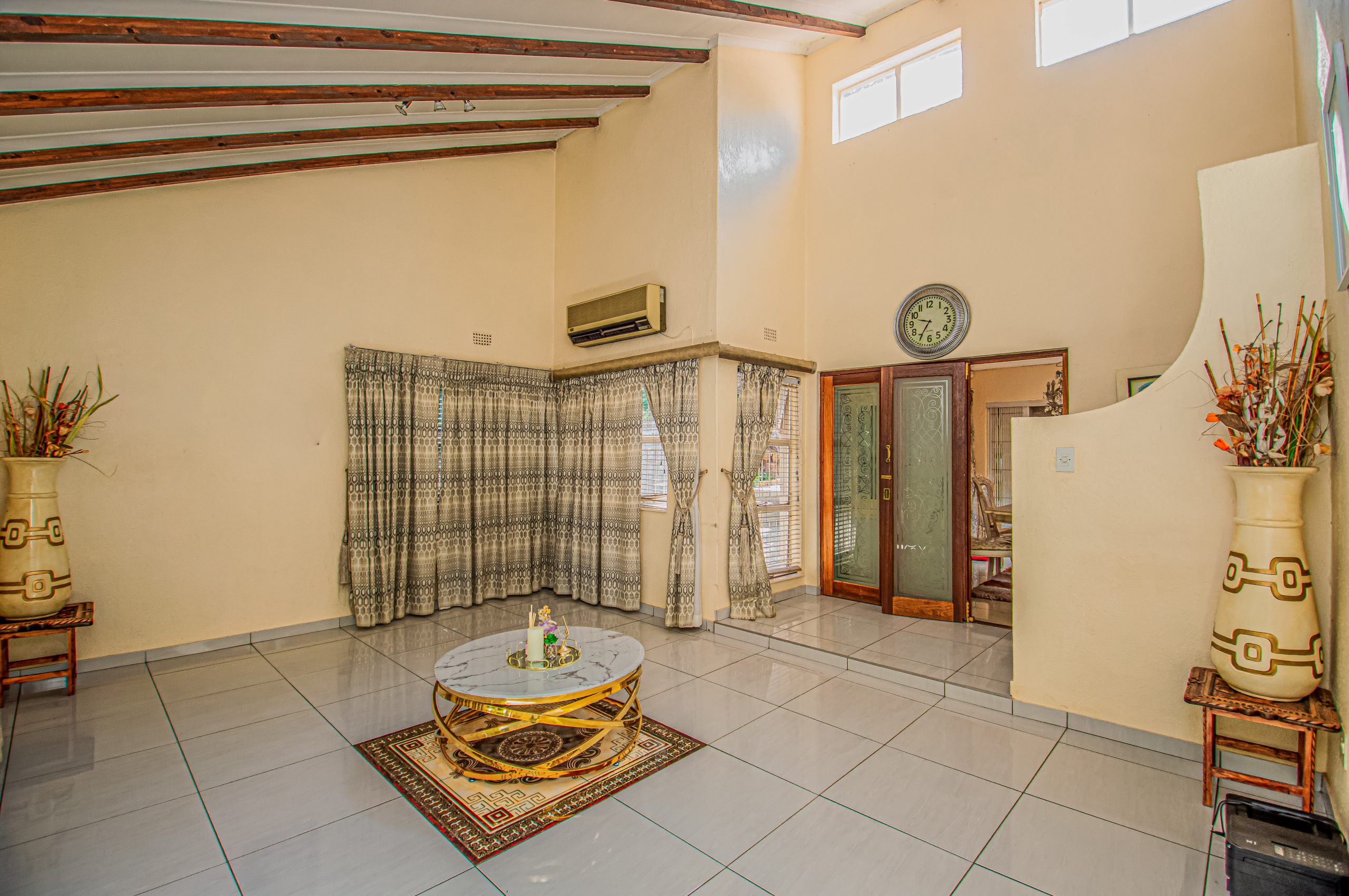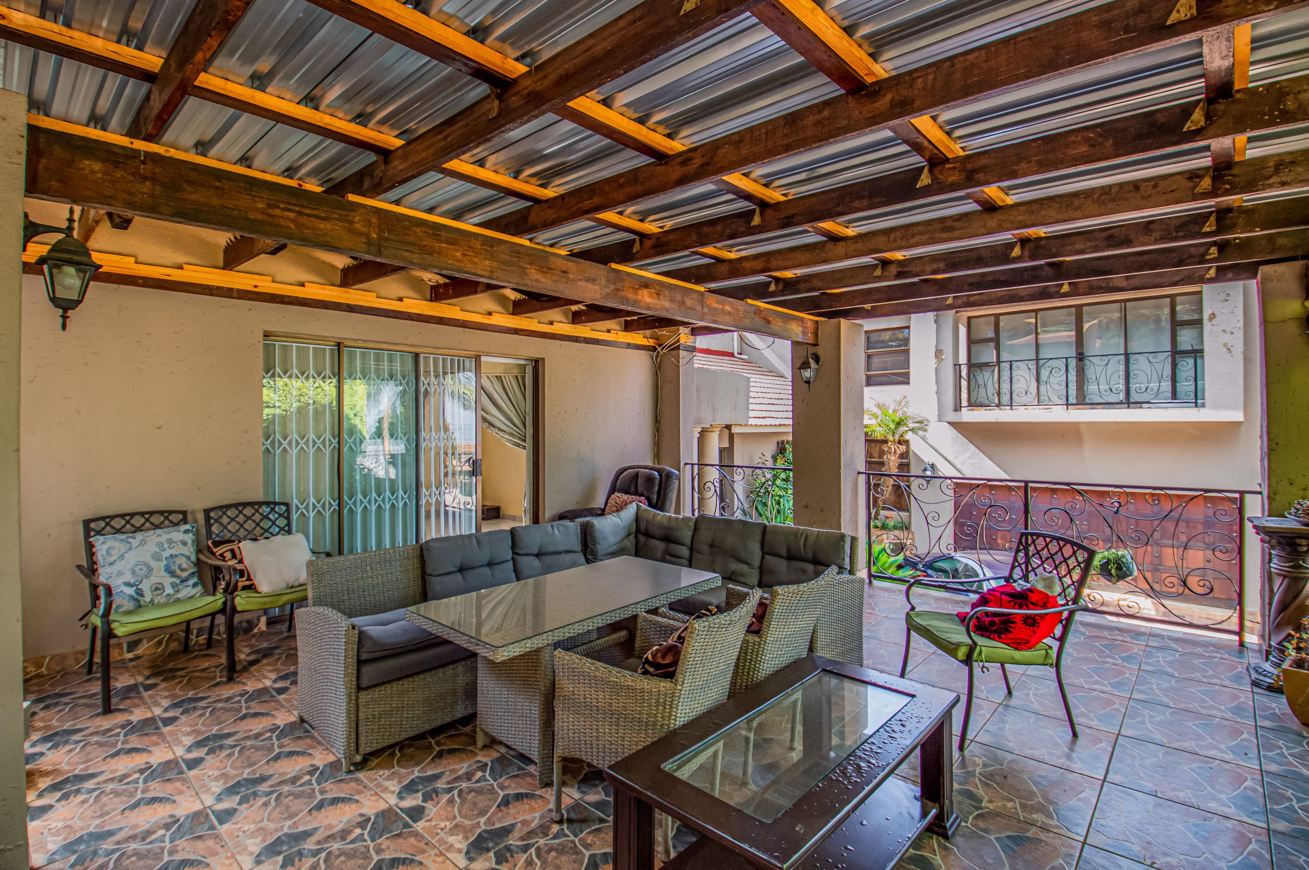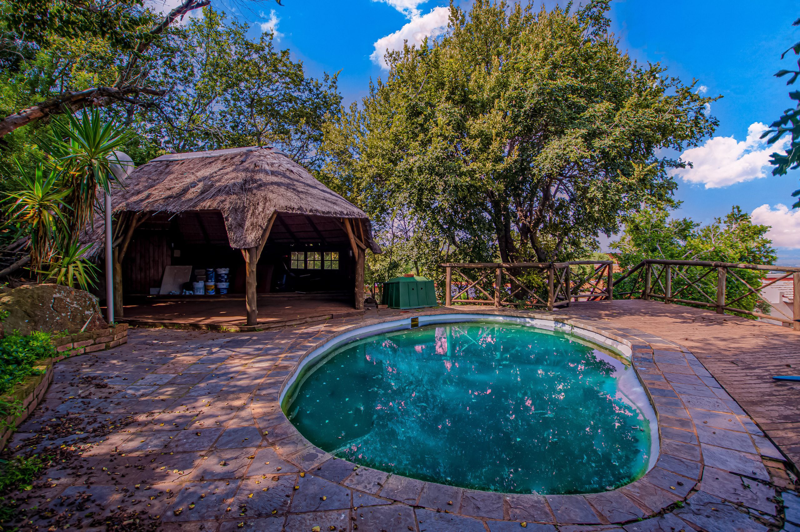 A key highlight is the spacious entertainment room complete with a built-in bar, making it the perfect setting for social gatherings. This space extends effortlessly to a covered patio and a large wooden deck, where you can enjoy expansive elevated views. A charming thatched lapa further enhances the outdoor entertainment offering.
