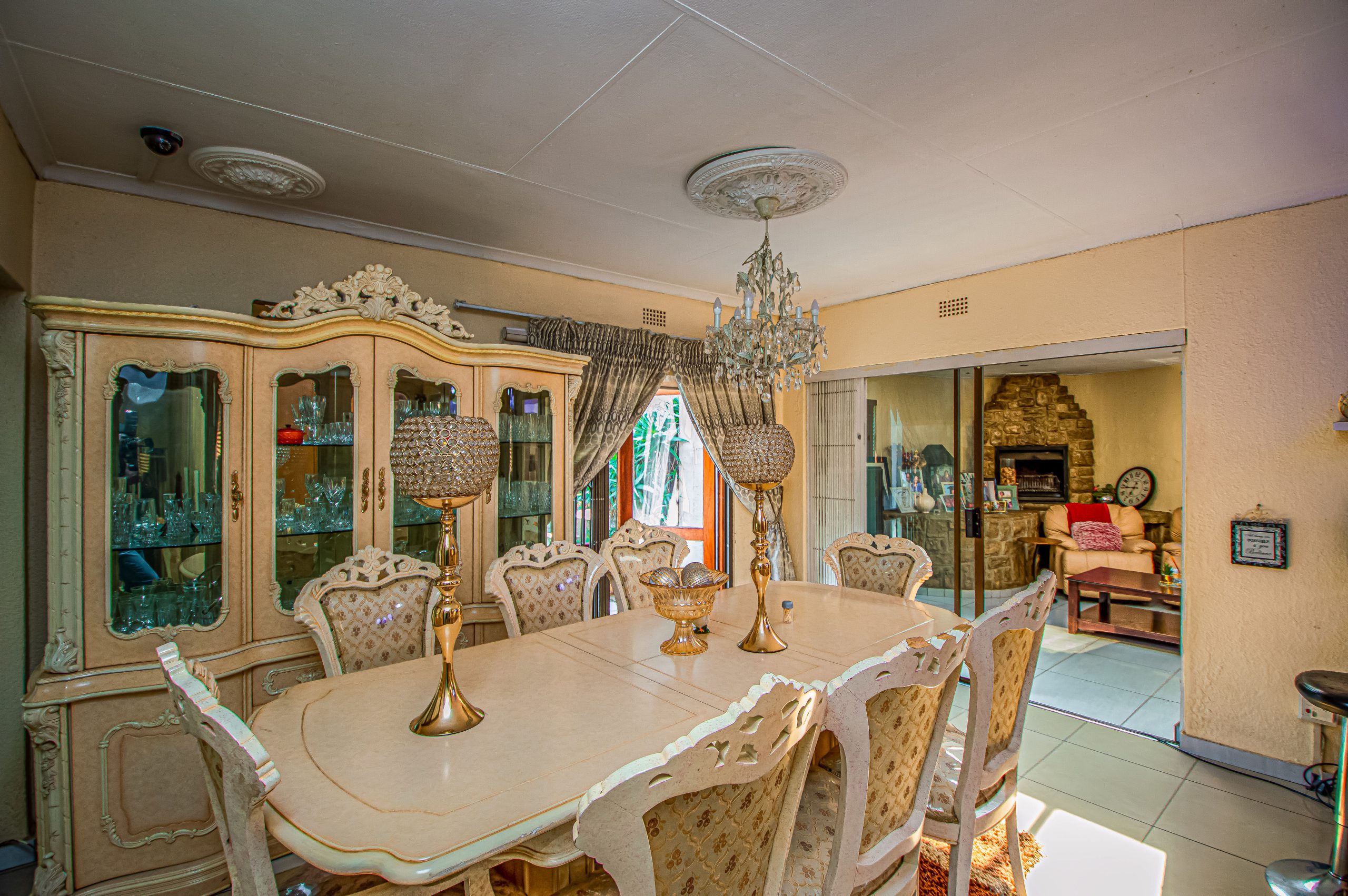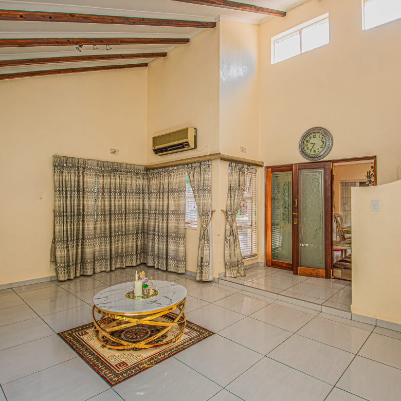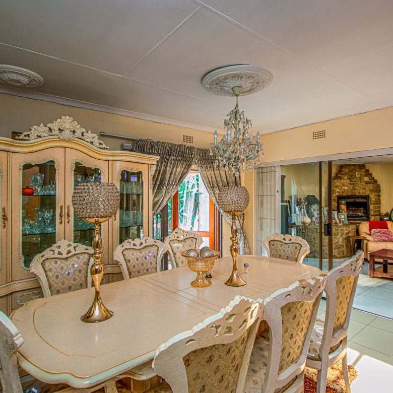 The home welcomes you into a split-level lounge, creating a sense of depth and character, flowing seamlessly into a dedicated dining area ideal for both everyday living and hosting. The kitchen, fitted with a gas stove, is designed for functionality while remaining central to the home’s layout.