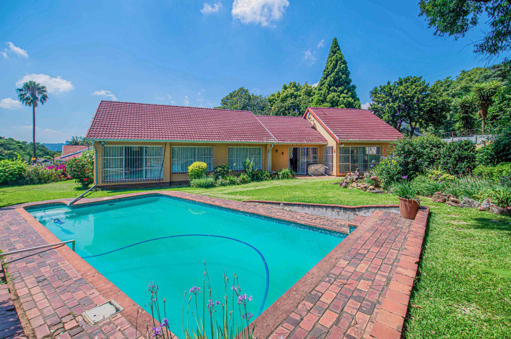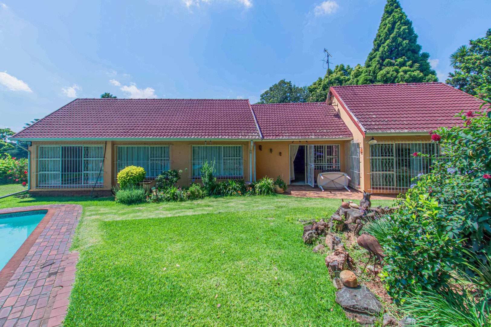 Outside, the property truly shines with exceptional parking and development potential. It includes five lockable garages and a double carport, with approved plans to convert the triple garage into a cottage, offering excellent rental or extended-family options. Additional features include staff quarters and a beautifully manicured, landscaped garden that completes the picture.