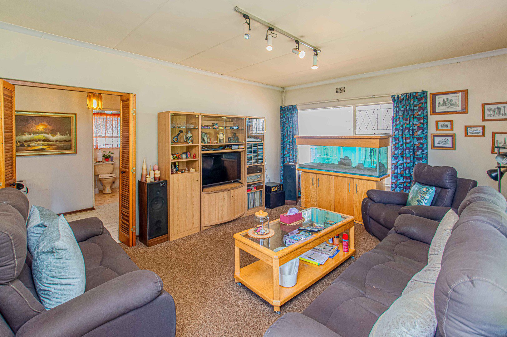 The home features a neat, fitted kitchen and tiled dining, lounge, and bar areas, creating a warm and welcoming atmosphere for everyday living and entertaining. A sun-filled lounge adds to the charm, while a dedicated study provides the perfect work-from-home or quiet retreat. There are three well-sized bedrooms, including a main bedroom with en-suite bathroom, a second full bathroom, and a separate guest toilet for added convenience.