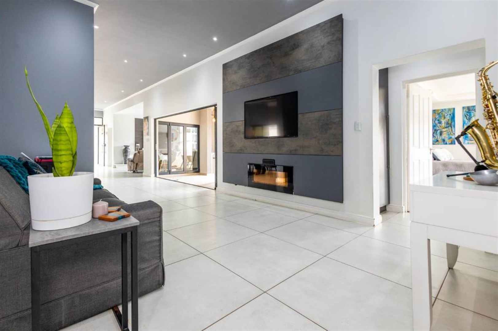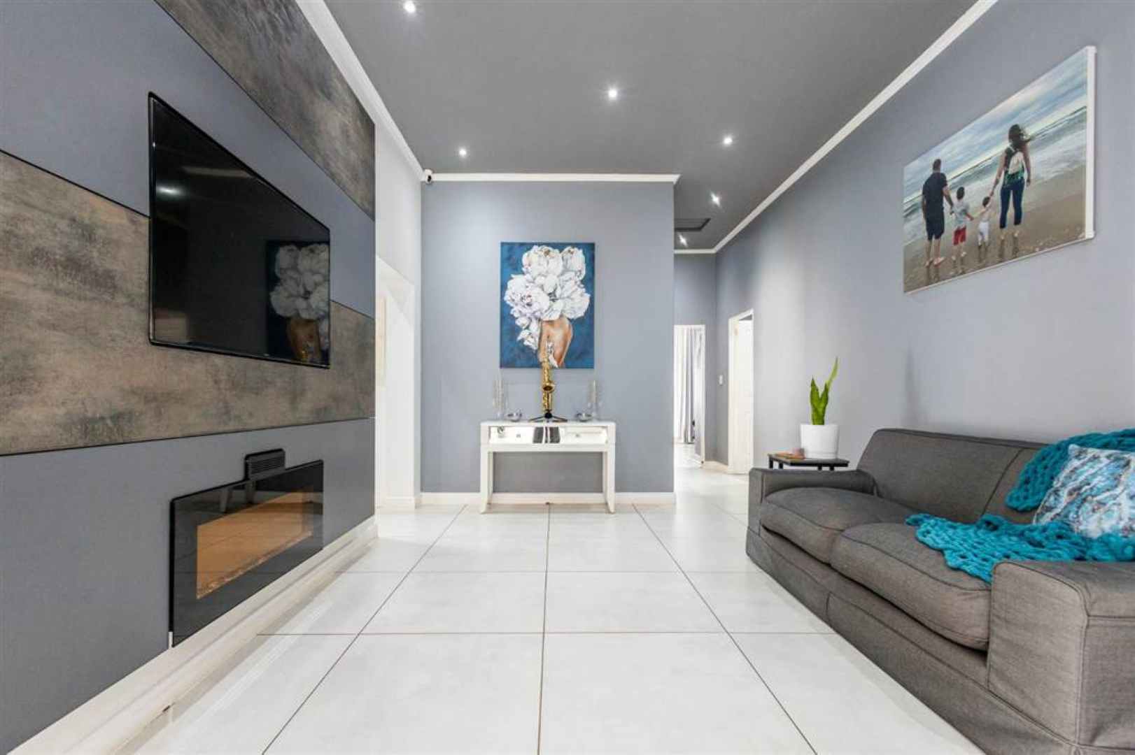 The residence features four well-appointed bedrooms, including a main en-suite, complemented by three stylish bathrooms and a convenient guest toilet. Living spaces include a formal lounge, a cozy TV room, and a dedicated dining area, ensuring ample room for both family gatherings and entertaining guests.