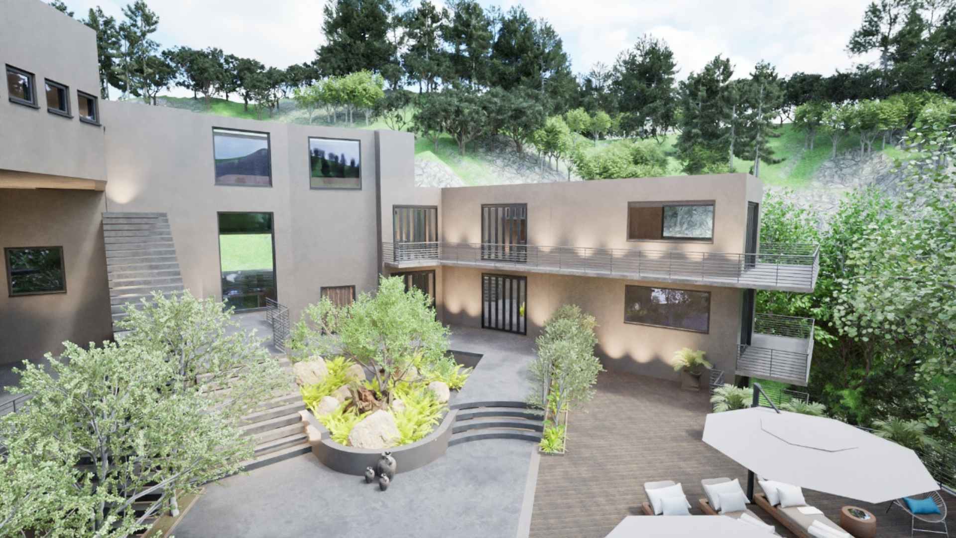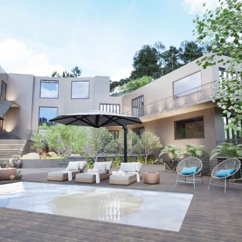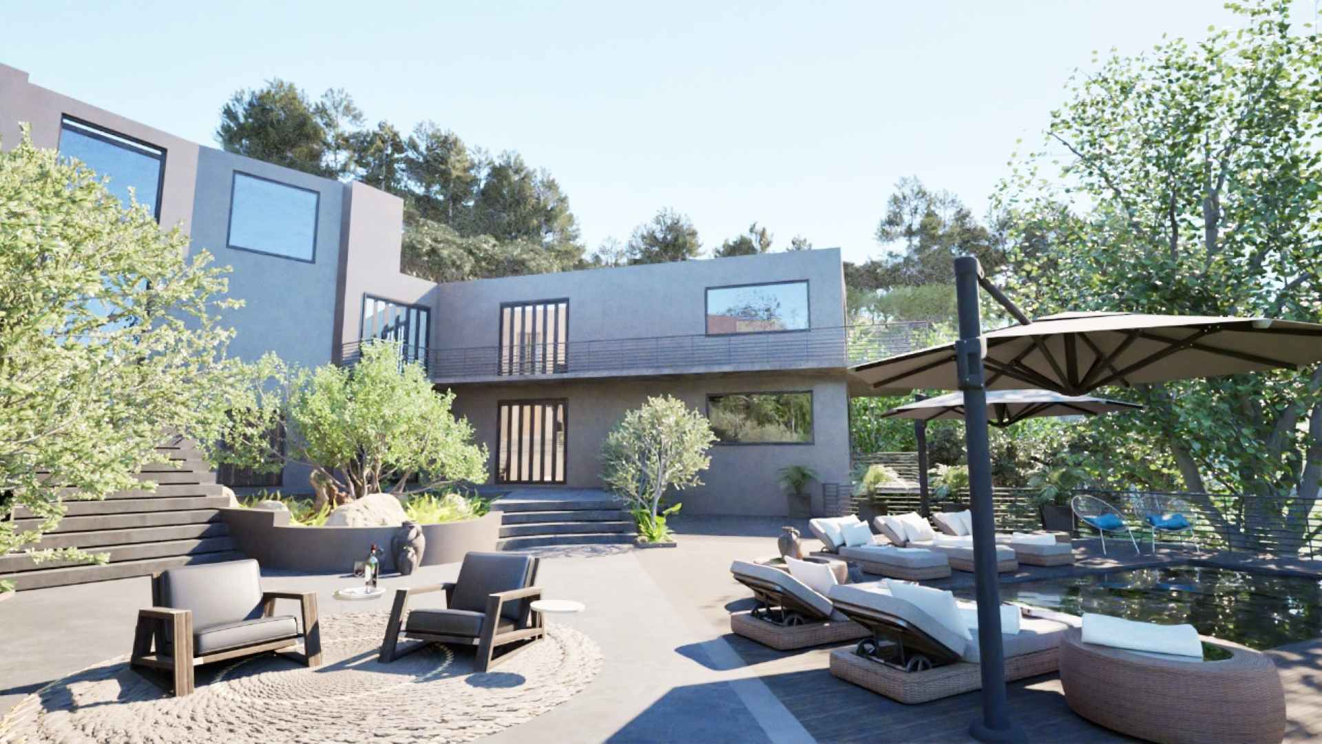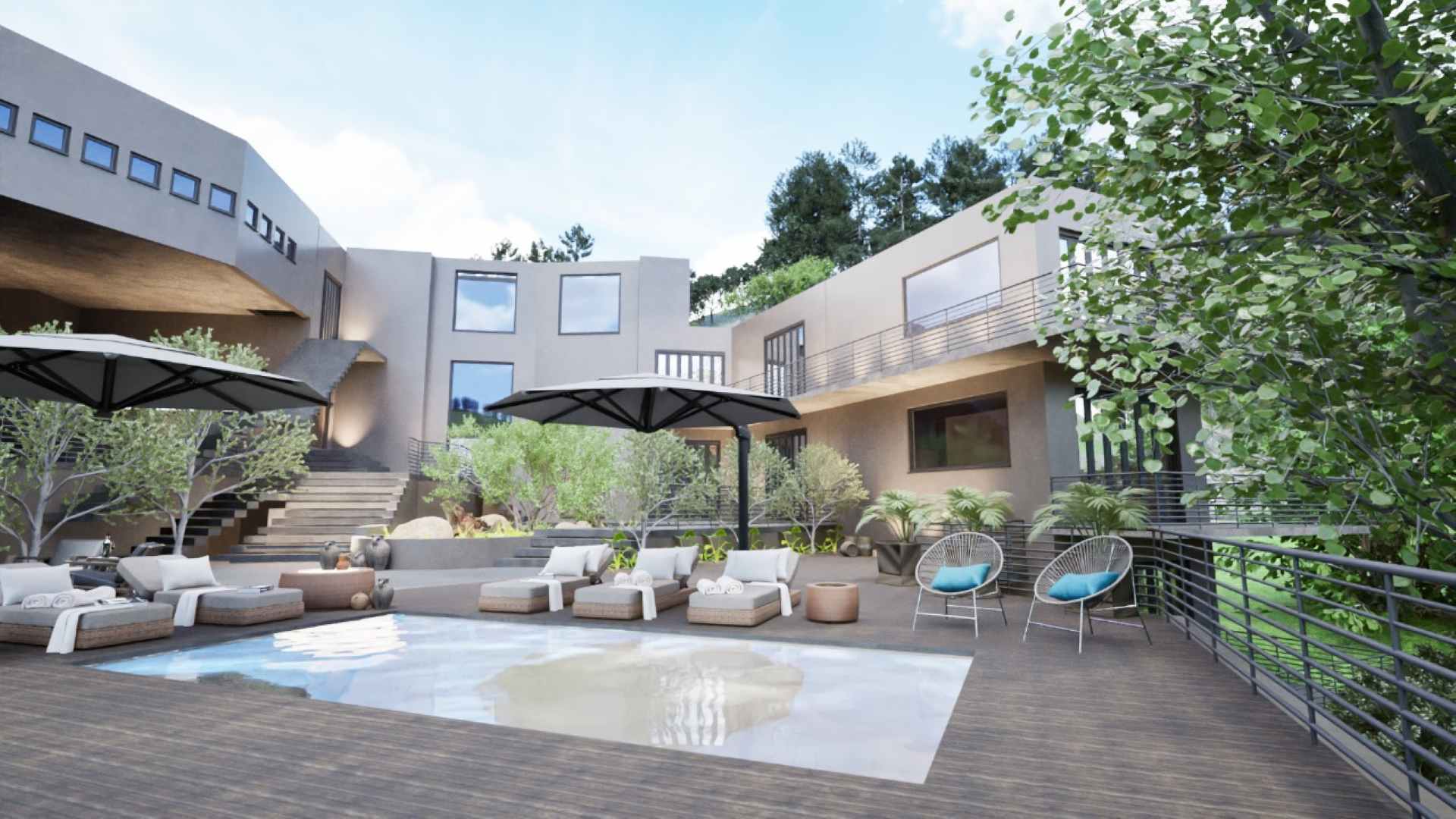 - Second natural-style pool with built-in rock features for a serene, resort-like feel