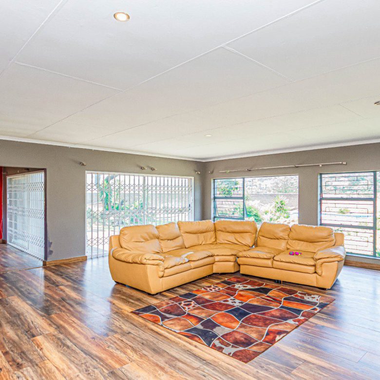 Designed for effortless living, the home boasts two lounges that create a warm and inviting atmosphere, perfect for both relaxation and entertaining guests. A dedicated dining area complements the well-appointed kitchen, which includes ample storage and a separate scullery for added convenience.