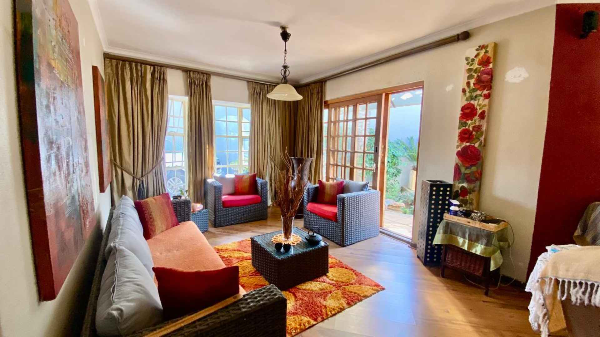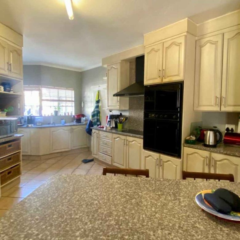 The kitchen is well-equipped with ample cupboards and a separate scullery, while a courtyard and washing line add everyday convenience. Outdoors, enjoy stunning views, a well-sized garden, and a sparkling swimming pool—ideal for relaxation and entertaining. A double garage, extra visitor parking, and excellent flow between indoor and outdoor spaces complete this beautiful home.